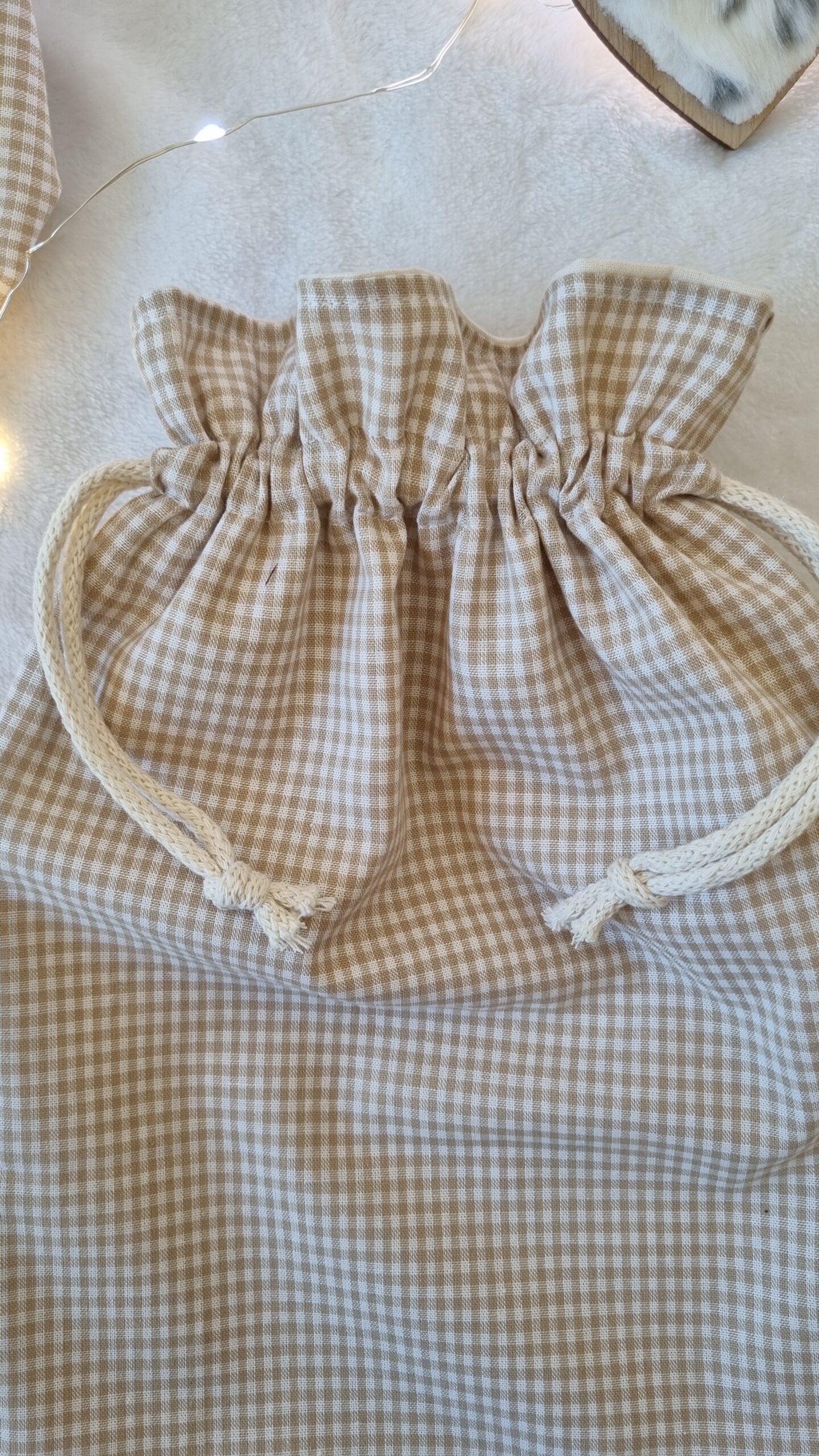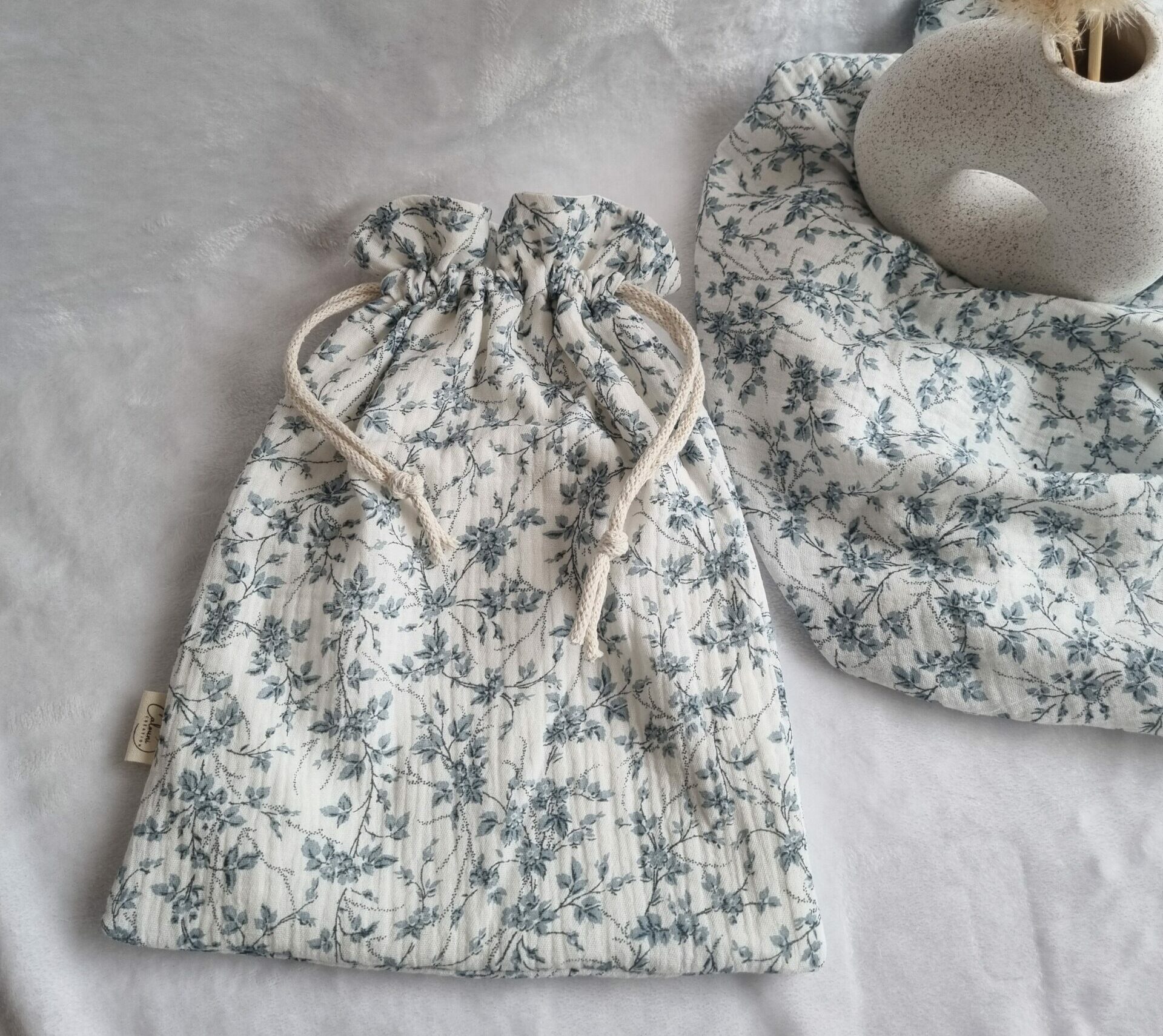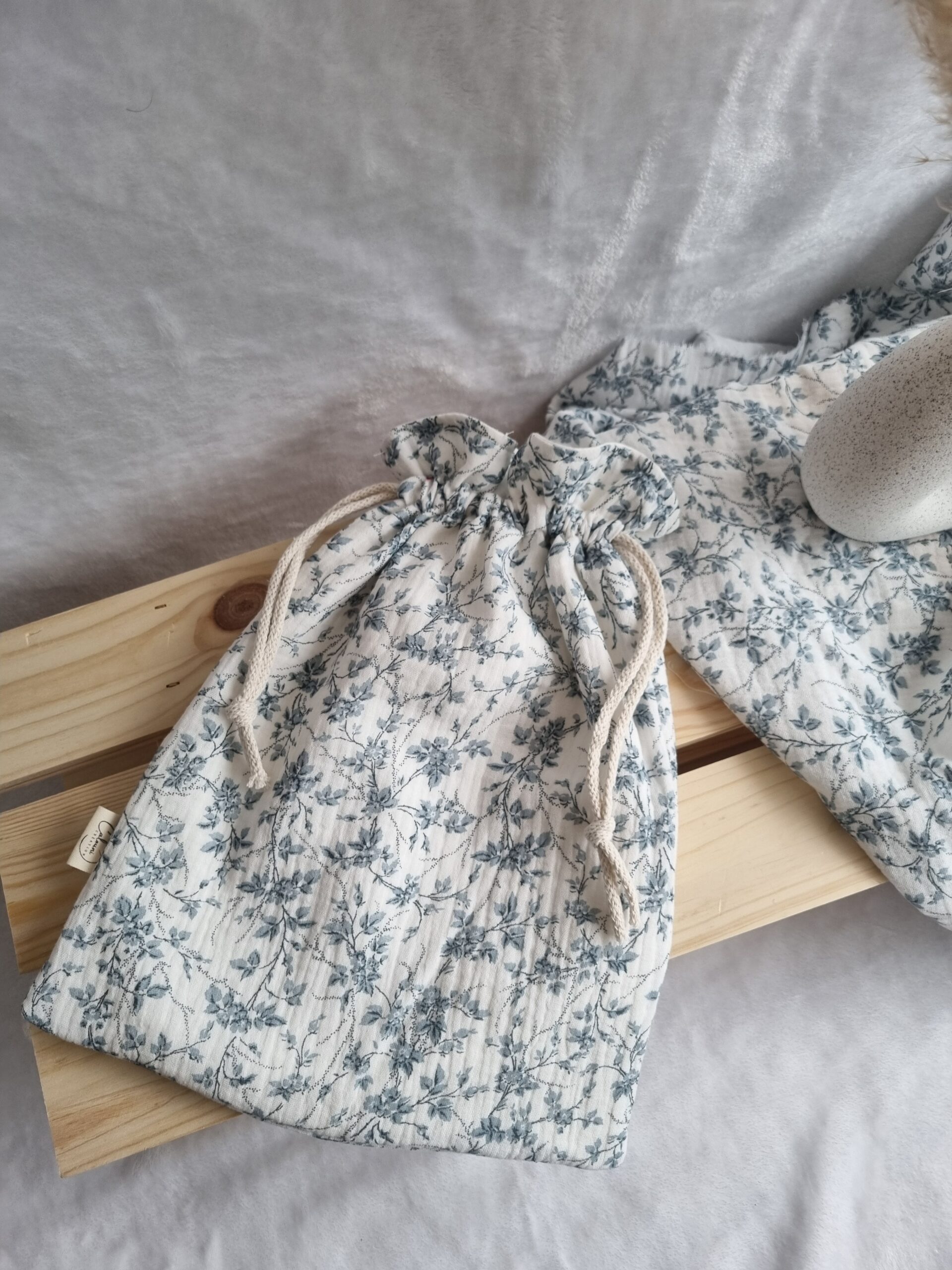 Le pochon est un accessoire indispensable pour ranger la première tenue de naissance de votre bébé ou tout simplement pour y ranger son change, son doudou lors des balades ou plus tard pour l’école maternelle. Il se ferme grâce à des cordons coulissants.